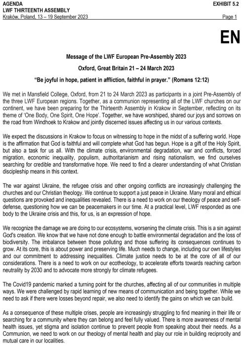 Messages from regional Pre-Assemblies are an important part of preparing for the Thirteenth Assembly. They gather insights from the regions and reflect discussions held during the Pre-Assemblies.